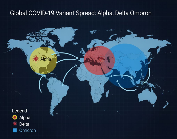 - Impact: Delta became the most dominant global strain in mid-2021, driving severe waves of infection across India, Southeast Asia, and the U.S.